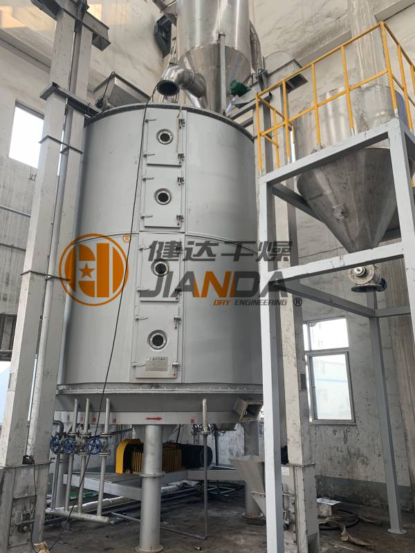 此次订购的盘式连续干燥机适用于硫酸钾的干燥,大盘直径为3000mm,小盘直径为2700mm,共17层圆盘,大、小盘各8套,总高度为6500mm,有效换热面积达到101.8㎡。可将含水量为6%的物料干燥至1%,每小时的产量为4000Kg。